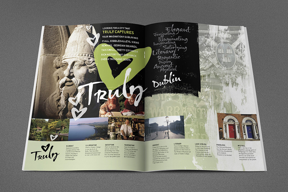 MARKETING COLLATERAL. Promotional literature was developed to identify the unique Dublin experience and distinguish Dublin from other city competitors.